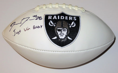 This Raiders Logo Football was personally hand signed by Josh Jacobs in black marker with the inscription "Just Win Baby". The Football was signed in the presence of a Beckett Authentication Services Representative and comes affixed with a witnessed individual numbered tamper-evident sticker and matching Certificate of Authenticity card. The Football also comes with Josh Jacobs and Famousink holograms guaranteeing authenticity for life. Domestic ground shipping for this item is FREE to the contiguous 48 states. Please contact us for International and other shipping options.