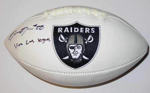 This Raiders Logo Football was personally hand signed by Josh Jacobs in black marker with the inscription "Viva Las Vegas". The Football was signed in the presence of a Beckett Authentication Services Representative and comes affixed with a witnessed individual numbered tamper-evident sticker and matching Certificate of Authenticity card. The Football also comes with Josh Jacobs and Famousink holograms guaranteeing authenticity for life. Domestic ground shipping for this item is FREE to the contiguous 48 states. Please contact us for International and other shipping options.