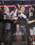 This Licensed 16x20 Photo was personally hand signed by Urban Meyer in red paint marker. The Photo was signed in the presence of a Beckett Authentication Services Representative and comes affixed with a individual numbered tamper-evident hologram. The Photo also comes with a Famous Ink hologram guaranteeing authenticity for life. Domestic ground shipping for this item is FREE to the contiguous 48 states. Please contact us for International and other shipping options.
