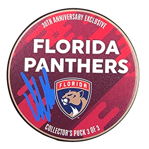 This Florida Panthers Hockey Puck was personally hand signed by Aleksander Barkov in blue paint marker. The Puck was signed in the presence of a Beckett Authentication Services Representative and comes affixed with a individual numbered tamper-evident hologram. The Puck also comes with a Famous Ink hologram guaranteeing authenticity for life. Domestic ground shipping for this item is FREE to the contiguous 48 states. Please contact us for International and other shipping options.