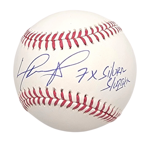 This MLB Baseball was personally hand signed by David Ortiz in blue ball point pen on the "sweet spot" with the inscription "7X Silver Slugger". The Baseball was signed in the presence of a MLB Authentication Representative and comes affixed with a numbered tamper-evident hologram. The Baseball also comes with a David Ortiz & Famous Ink hologram guaranteeing authenticity for life. Domestic ground shipping for this item is FREE to the contiguous 48 states. Please contact us for International and other shipping options.