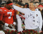 This Licensed 16x20 Photo was personally hand signed by Dwayne Haskins and Urban Meyer in black marker. The Photo is Authenticated by Beckett Authentication Services and comes affixed with a individual numbered tamper-evident sticker and matching Certificate of Authenticity card. The Photo also comes with a Famousink hologram guaranteeing authenticity for life. Domestic ground shipping for this item is FREE to the contiguous 48 states. Please contact us for International and other shipping options.