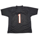 This Pro Style Jersey was personally hand signed by Ja'marr Chase in black marker. The Jersey was signed in the presence of a Beckett Authentication Services Representative and comes affixed with a witnessed individual numbered tamper-evident hologram. The Jersey also comes with a Famous Ink & Ja'Marr Chase holograms guaranteeing authenticity for life. Domestic ground shipping for this item is FREE to the contiguous 48 states. Please contact us for International and other shipping options.