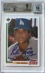 This 1991 Upper Deck Final Edition Rookie Trading Card was personally hand signed by Pedro Martinez in blue marker. The card is Graded MINT 9 AUTO 10. The Card is authenticated and encapsulated by Beckett. Domestic ground shipping for this item is FREE to the contiguous 48 states. Please contact us for International and other shipping options.