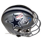 This Riddell Speed Flex Authentic Helmet was personally hand signed by Ezekiel Elliott in red,white and blue paint marker with the inscription "America's Team". The Helmet was signed in the presence of a Beckett Authentication Services Representative and comes affixed with a individual numbered tamper-evident sticker and Certificate of Authenticity. The Helmet also comes with a Famousink hologram guaranteeing authenticity for life. Domestic ground shipping for this item is FREE to the contiguous 48 states. Please contact us for International and other shipping options.