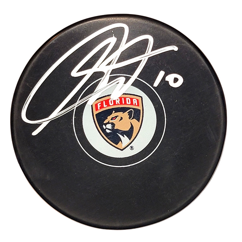This Florida Panthers Hockey Puck was personally hand signed by AJ Greer in silver paint marker. The Puck was signed in the presence of a Beckett Authentication Services Representative and comes affixed with a individual numbered tamper-evident hologram. The Puck also comes with a Famous Ink hologram guaranteeing authenticity for life. Domestic ground shipping for this item is FREE to the contiguous 48 states. Please contact us for International and other shipping options.