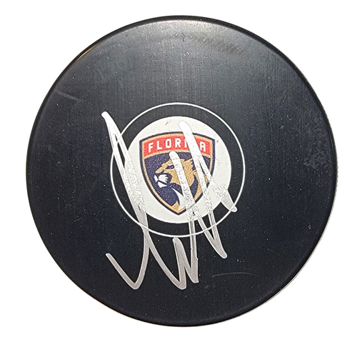 This Florida Panthers Hockey Puck was personally hand signed by Aleksander Barkov in silver paint marker. The Puck is Authenticated by Beckett Authentication Services Representative and comes affixed with a individual numbered tamper-evident hologram. The Puck also comes with a Famous Ink hologram guaranteeing authenticity for life. Domestic ground shipping for this item is FREE to the contiguous 48 states. Please contact us for International and other shipping options.