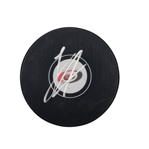 This Carolina Hurricanes Logo Hockey Puck was personally hand signed by Logan Stankoven in silver paint marker. The Puck was Authenticated by Beckett Authentication Services and comes affixed with a individual numbered tamper-evident hologram. The Puck also comes with a Famous Ink hologram guaranteeing authenticity for life. Domestic ground shipping for this item is FREE to the contiguous 48 states. Please contact us for International and other shipping options.