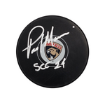 This Florida Panthers Logo Hockey Puck was personally hand signed by Paul Maurice in silver paint marker with "24 SCC". The Puck was Authenticated by Beckett Authentication Services and comes affixed with a individual numbered tamper-evident hologram. The Puck also comes with a Famous Ink hologram guaranteeing authenticity for life. Domestic ground shipping for this item is FREE to the contiguous 48 states. Please contact us for International and other shipping options.