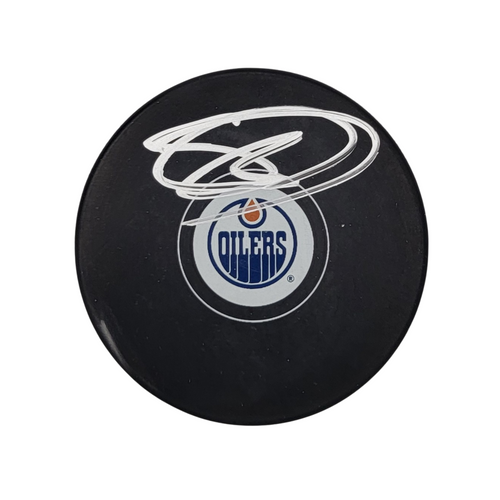 This Edmonton Oilers Logo Hockey Puck was personally hand signed by Stuart Skinner in silver paint marker. The Puck was Authenticated by Beckett Authentication Services and comes affixed with a individual numbered tamper-evident hologram. The Puck also comes with a Famous Ink hologram guaranteeing authenticity for life. Domestic ground shipping for this item is FREE to the contiguous 48 states. Please contact us for International and other shipping options.