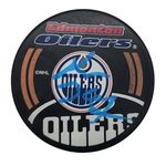 This Edmonton Oilers Logo Hockey Puck was personally hand signed by Wayne Gretzky in blue paint marker. The Puck was Authenticated by Beckett Authentication Services and comes affixed with a individual numbered tamper-evident hologram. The Puck also comes with a Famous Ink hologram guaranteeing authenticity for life. Domestic ground shipping for this item is FREE to the contiguous 48 states. Please contact us for International and other shipping options.