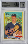 This 1989 Topps Trading Card #157 was personally hand signed by Tom Glavine in blue marker. The Card was Authenticated, Graded AUTOGRAPH 10 and encapsulated by Beckett. Domestic ground shipping for this item is FREE to the contiguous 48 states. Please contact us for International and other shipping options.