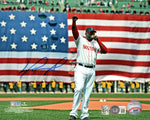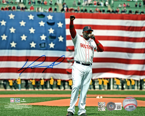 This Licensed 8x10 Photo was personally hand signed by David Ortiz in blue marker. The Photo was signed in the presence of a Beckett Authentication Services Representative and comes affixed with a witnessed individual numbered tamper-evident hologram. The Photo also comes with a Famous Ink and David Ortiz holograms guaranteeing authenticity for life. Domestic ground shipping for this item is FREE to the contiguous 48 states. Please contact us for International and other shipping options.