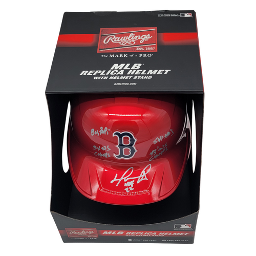 This Limited Edition of 34 Replica Batting Helmet was personally hand signed by David Ortiz in silver marker with HOF 22,Big Papi,3X WS Champs,541 HR's & 13 WS MVP. The...