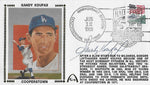 This Hall of Fame Cache was personally hand signed by Sandy Koufax in blue ball point pen. The cache is Authenticated by JSA and comes affixed with a individual numbered tamper-evident sticker and matching Certificate of Authenticity. The cache also comes with a Famousink hologram guaranteeing authenticity for life. Domestic ground shipping for this item is FREE to the contiguous 48 states. Please contact us for International and other shipping options.