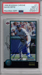 This 1998 Bowman Chrome Trading Card was personally hand signed by David Ortiz in blue marker With 'HOF 22". The Card is GRADED Mint 9 AUTO 10 and encapsulated by PSA. Domestic ground shipping for this item is FREE to the contiguous 48 states. Please contact us for International and other shipping options.