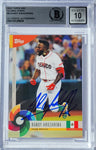 This 2023 Topps WBC Mexico Trading Card # 6 was personally hand signed by Randy Arozarena in blue marker. The Card Authenticated, AUTOGRAPH Graded 10 and encapsulated by Beckett. Domestic ground shipping for this item is FREE to the contiguous 48 states. Please contact us for International and other shipping options.