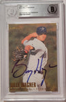 This 1996 Fleer Rookie Trading Card #422 was personally hand signed by Billy Wagner in blue marker. The Card was Authenticated and encapsulated by Beckett. Domestic ground shipping for this item is FREE to the contiguous 48 states. Please contact us for International and other shipping options.