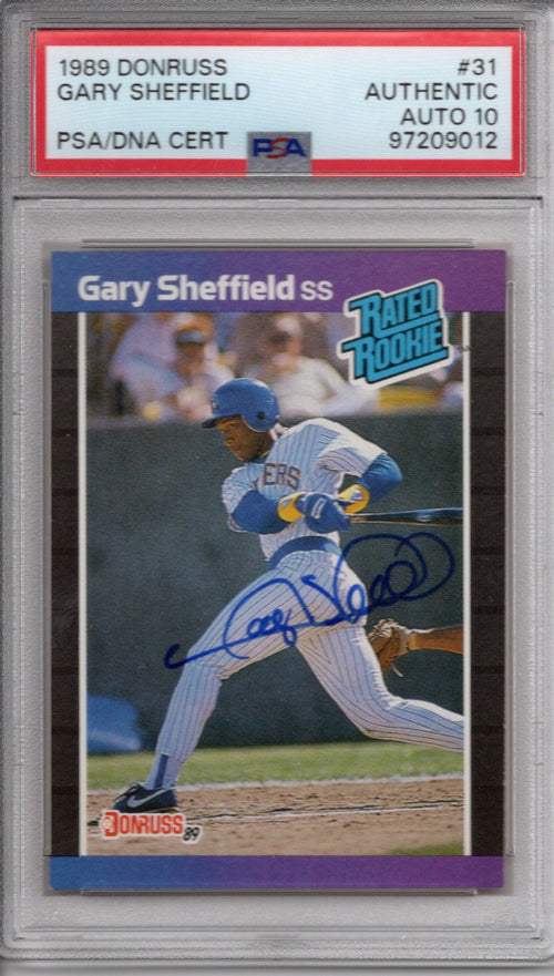 This 1989 Donruss Trading Card was personally hand signed by Gary Sheffield in blue marker. The Card is GRADED AUTHENTIC AUTO AUTH and encapsulated by PSA. Domestic ground shipping for this item is FREE to the contiguous 48 states. Please contact us for International and other shipping options.