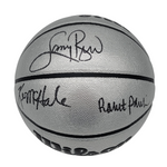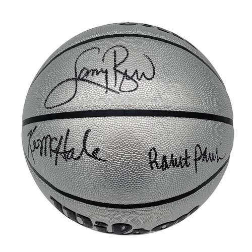 This Wilson NBA Platinum Edition basketball was personally hand signed by Larry Bid,Kevin McHale & Robert Parish in black Marker marker. The Basketball was signed in the presence of a Beckett Authentication Services Representative and comes affixed with a witnessed individual numbered tamper-evident hologram. The Basketball also comes with a Famous Ink hologram guaranteeing authenticity for life. Domestic ground shipping for this item is FREE to the contiguous 48 states. Please contact us for International and other shipping options.