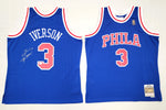 This Mitchell & Ness Swingman Jersey was personally hand signed by Allen Iverson in silver paint marker on the Jersey with the inscription "The Answer". The Jersey was signed in the presence of a Beckett Authentication Services Representative and comes affixed with a witnessed individual numbered tamper-evident Hologram. The Jersey also comes with a Famous ink hologram guaranteeing authenticity for life. Domestic ground shipping for this item is FREE to the contiguous 48 states. Please contact us for International and other shipping options.