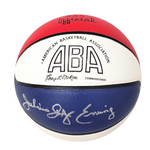 This Official ABA Basketball was personally hand signed by Julius Erving in silver paint marker. The Basketball was signed in the presence of a Beckett Authentication Services Representative and comes affixed with a witnessed individual numbered tamper-evident hologram. The Basketball also comes with a Famous Ink hologram guaranteeing authenticity for life. Domestic ground shipping for this item is FREE to the contiguous 48 states. Please contact us for International and other shipping options.