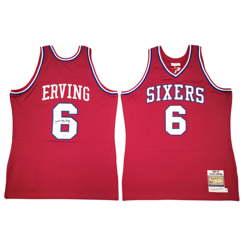 This Mitchell & Ness Authentic Jersey was personally hand signed by Julius Erving in black marker. The Jersey was signed in the presence of a Beckett Authentication Services Representative and comes affixed with a witnessed individual numbered tamper-evident hologram. The Jersey also comes with a Famous Ink hologram guaranteeing authenticity for life. Domestic ground shipping for this item is FREE to the contiguous 48 states. Please contact us for International and other shipping options.