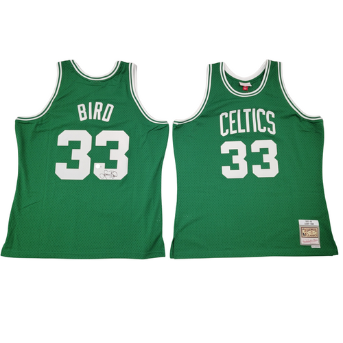 This Mitchell & Ness Swingman Jersey was personally hand signed by Larry Bird in black marker. The Jersey was signed in the presence of a Beckett Authentication Services Representative and comes affixed with a witnessed individual numbered tamper-evident hologram. The Jersey also comes with a Famous Ink hologram guaranteeing authenticity for life. Domestic ground shipping for this item is FREE to the contiguous 48 states. Please contact us for International and other shipping options.