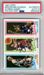 This 1980 Topps Rookie Trading Card (96934302) was personally hand signed by Larry Bird, Julius Erving and Magic Johnson in blue marker. The Card is GRADED AUTO 10 and encapsulated by PSA. Domestic ground shipping for this item is FREE to the contiguous 48 states. Please contact us for International and other shipping options.