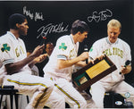This Licensed 16x20 Photo was personally hand signed by Larry Bird, Kevin McHale and Robert Parish in silver marker. The Photo was signed in the presence of a Beckett Authentication Services Representative and comes affixed with a witnessed individual numbered tamper-evident sticker and matching Certificate of Authenticity card. The Photo also comes with a Famous Ink hologram guaranteeing authenticity for life. Domestic ground shipping for this item is FREE to the contiguous 48 states. Please contact us for International and other shipping options.