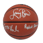 This Wilson NBA Authentic Series Indoor/Outdoor Basketball was personally hand signed by Larry Bird, Kevin McHale and Robert Parish in silver paint marker. The Basketball was signed in the presence of a Beckett Authentication Services Representative and comes affixed with a witnessed individual numbered tamper-evident sticker and matching Certificate of Authenticity card. The Basketball also comes with a Famous Ink hologram guaranteeing authenticity for life. Domestic ground shipping for this item is FREE to the contiguous 48 states. Please contact us for International and other shipping options.