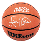 This Wilson NBA Ball was personally hand signed by Larry Bird & Magic Johnson in silver paint marker. The Basketball was signed in the presence of a Beckett Authentication Services Representative and comes affixed with a witnessed individual numbered tamper-evident hologram. The Basketball also comes with a Famous Ink hologram guaranteeing authenticity for life. Domestic ground shipping for this item is FREE to the contiguous 48 states. Please contact us for International and other shipping options.