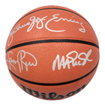 This Wilson NBA Authentic Series Indoor/Outdoor Basketball was personally hand signed by Larry Bird, Magic Johnson and Julius Erving in silver paint marker. The Basketball was signed in the presence of a Beckett Authentication Services Representative and comes affixed with a witnessed individual numbered tamper-evident hologram. The Basketball also comes with a Famous Ink hologram guaranteeing authenticity for life. Domestic ground shipping for this item is FREE to the contiguous 48 states. Please contact us for International and other shipping options.