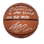This Spalding NBA Game Basketball was personally hand signed by Shaquille O'Neal in silver paint marker with the Inscriptions "1992 #1 Overall Pick,4X NBA Champion,3X Finals MVP,NBA Top 50/75 & HOF 16". The Basketball was signed in the presence of a Beckett Authentication Services Representative and comes affixed with a witnessed individual numbered tamper-evident sticker and matching Certificate of Authenticity card. The Basketball also comes with a Famous Ink hologram guaranteeing authenticity for life. Domestic ground shipping for this item is FREE to the contiguous 48 states. Please contact us for International and other shipping options.