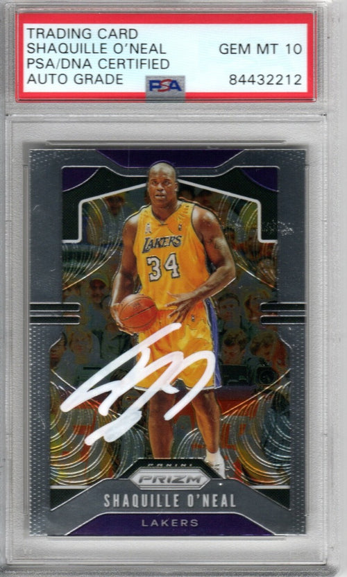 This 2019-20 Panini Trading Card was personally hand signed by Shaquille O'Neal in white marker. The Card is AUTO Graded GEM MT 10 and encapsulated by PSA/DNA. Domestic ground shipping for this item is FREE to the contiguous 48 states. Please contact us for International and other shipping options.