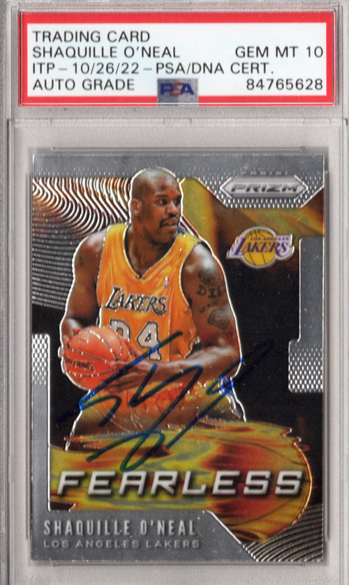 This 2019-20 Panini Trading Card was personally hand signed by Shaquille O'Neal in blue marker. The Card is AUTO Graded GEM MT 10 and encapsulated by PSA/DNA. Domestic ground shipping for this item is FREE to the contiguous 48 states. Please contact us for International and other shipping options.