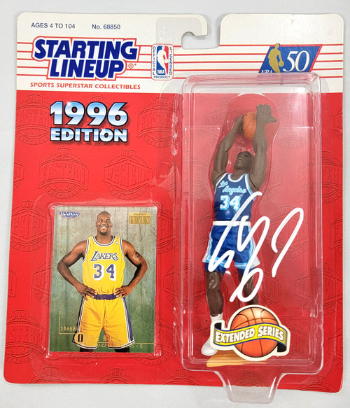 This Starting Lineup was personally hand signed by Shaquille O'Neal in white paint marker. The Starting Lineup was signed in the presence of a Beckett Authentication Services Representative and comes affixed with a witnessed individual numbered tamper-evident hologram. The Starting Lineup also comes with a Famousink hologram guaranteeing authenticity for life. Domestic ground shipping for this item is FREE to the contiguous 48 states. Please contact us for International and other shipping options.