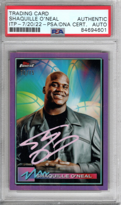 This 2021 Topps Finest Trading Card was personally hand signed by Shaquille O'Neal in pink paint marker. The Card is Authenticated and encapsulated by PSA/DNA. Domestic ground shipping for this item is FREE to the contiguous 48 states. Please contact us for International and other shipping options.