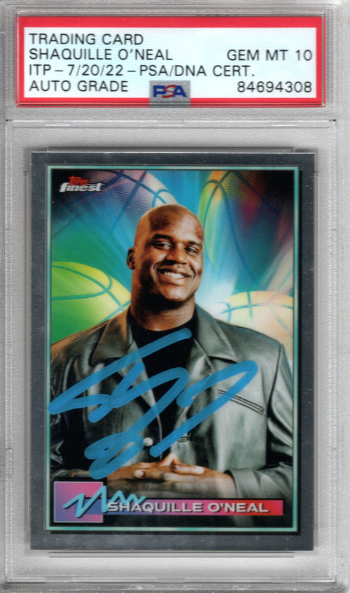 This 2021 Topps Finest Trading Card was personally hand signed by Shaquille O'Neal in blue paint marker. The Card is AUTO GRADED GEM MINT 10 and encapsulated by PSA/DNA. Domestic ground...
