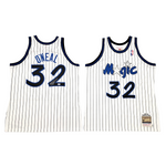 This Mitchell & Ness Swingman Jersey was personally hand signed by Shaquille O'Neal in silver paint marker. The Jersey was signed in the presence of a PSA/DNA Representative and comes affixed with a witnessed individual numbered tamper-evident hologram and matching Certificate of Authenticity . The Jersey also comes with a Famous Ink hologram guaranteeing authenticity for life. Domestic ground shipping for this item is FREE to the contiguous 48 states. Please contact us for International and other shipping options.