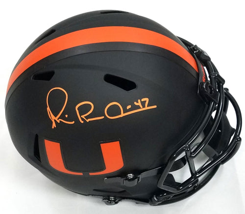 This Riddell Replica Eclipse Helmet was hand signed by Michael Irvin in orange paint marker. The Helmet was signed in the presence of a Beckett Authentication Services Representative and comes affixed with a witnessed individual numbered tamper-evident sticker with matching Certificate of Authenticity. The Helmet also comes with a Famous Ink hologram guaranteeing authenticity for life. Domestic ground shipping for this item is FREE to the contiguous 48 states. Please contact us for International and other shipping options.
