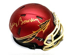 This Mini Helmet was personally hand signed by Bobby Bowden in gold paint marker. The Mini Helmet was signed in the presence of a Beckett Authentication Services Representative and comes affixed with a witnessed individual numbered tamper-evident sticker and matching Certificate of Authenticity card. The Mini Helmet also comes with a Famousink hologram guaranteeing authenticity for life. Domestic ground shipping for this item is FREE to the contiguous 48 states. Please contact us for International and other shipping options.