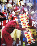 This 8x10 photo was personally hand signed by Bobby Bowden in gold marker. The photo was signed in the presence of a Beckett Authentication Services Representative and comes affixed with a witnessed individual numbered tamper-evident sticker and matching Certificate of Authenticity card. The photo also comes with a Famous Ink hologram guaranteeing authenticity for life. Domestic ground shipping for this item is FREE to the contiguous 48 states. Please contact us for International and other shipping options.