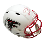 This Riddell Speed Replica Helmet was personally hand signed by Deion Sanders in red paint marker with the inscription "Prime Time". The Helmet was signed in the presence of a Beckett Authentication Services Representative and comes affixed with a witnessed individual numbered tamper-evident sticker and matching Certificate of Authenticity card. The Helmet also comes with a Famousink hologram guaranteeing authenticity for life. Domestic ground shipping for this item is FREE to the contiguous 48 states. Please contact us for International and other shipping options.