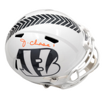 Elevate your Bengals collection with this authentic Cincinnati Bengals 2024 Salute to Service (STS) Riddell replica helmet signed by Ja’Marr Chase. This collectible was personally hand-signed in the presence of a Beckett Authentication Services representative and includes a numbered, tamper-evident Beckett witness hologram as well as a Famous Ink lifetime guarantee of authenticity — giving you full confidence in its provenance. Famous Ink
