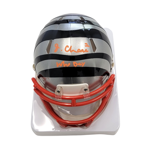 This Mini Helmet was personally hand signed by Ja'Marr Chase in orange paint marker with the inscription "Who Dey". The Mini Helmet was signed in the presence of a Beckett Authentication Services Representative and comes affixed with a witnessed individual numbered hologram. The Mini Helmet also comes with a Famous ink hologram guaranteeing authenticity for life. Domestic ground shipping for this item is FREE to the contiguous 48 states. Please contact us for International and other shipping options.