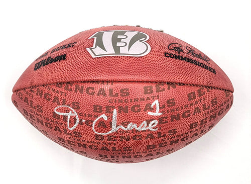 This NFL Duke Football was personally hand signed by Ja'Marr Chase in silver paint marker. The Football was signed in the presence of Beckett Authentication Services and comes affixed with a individual Witnessed numbered tamper-evident hologram. The Football also comes with a Famous Ink hologram guaranteeing authenticity for life. Domestic ground shipping for this item is FREE to the contiguous 48 states. Please contact us for International and other shipping options.