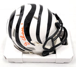 This Mini Helmet was personally hand signed by Ja'Marr Chase in orange paint marker. The Mini Helmet was signed in the presence of a Beckett Authentication Services Representative and comes affixed with a witnessed individual numbered hologram. The Mini Helmet also comes with a Ja'Marr Chase & Famous ink holograms guaranteeing authenticity for life. Domestic ground shipping for this item is FREE to the contiguous 48 states. Please contact us for International and other shipping options.