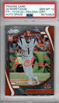 This 2021 Panini Trading Card was personally hand signed by Ja'Marr Chase in orange paint marker. The Autograph is Graded GEM MT. 10. The Card was signed in the presence of a PSA representative and encapsulated...