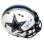 This Riddell Authentic Lunar Eclipse Helmet was personally hand signed by Dak Prescott in blue paint marker. The Helmet was signed in the presence of a Beckett Authentication Services Representative and comes affixed with a witnessed individual numbered tamper-evident Hologram. The Helmet also comes with a Famous Ink hologram guaranteeing authenticity for life. Domestic ground shipping for this item is FREE to the contiguous 48 states. Please contact us for International and other shipping options.